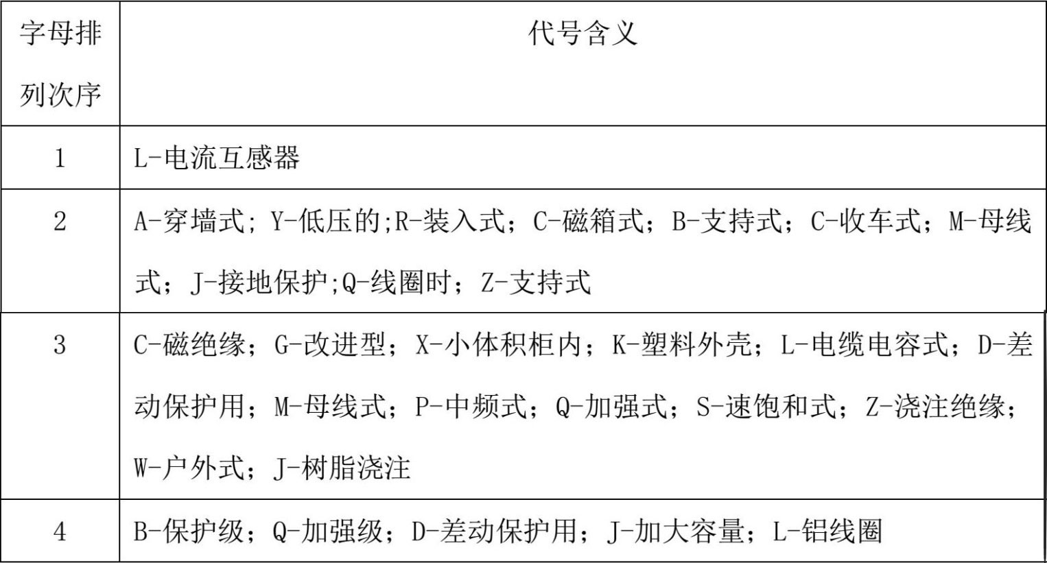 电流互感器型号表示如下,其中前几位代号含义见表2-2.